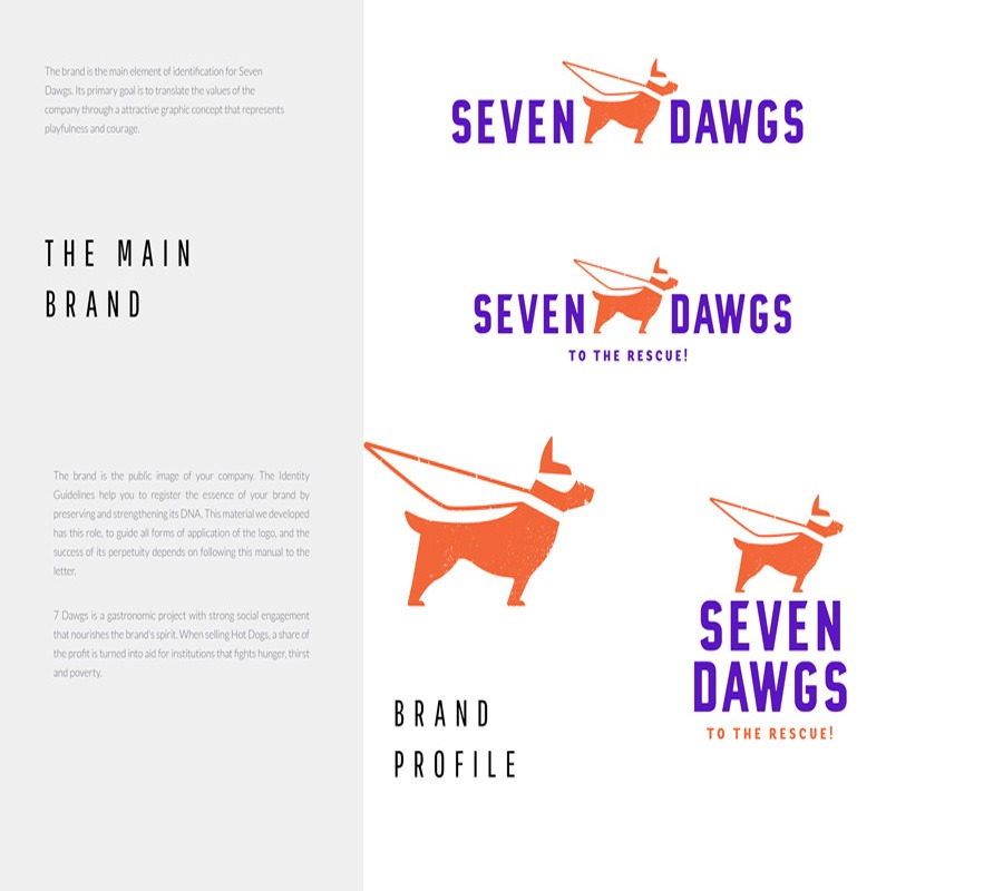 The brand is the main element of identification for Seven Dawgs. Its primary goal is to translate the values of the company through an attractive graphic concept that represents playfulness and courage. The logo has different applications, which is possible due its charismatic character.