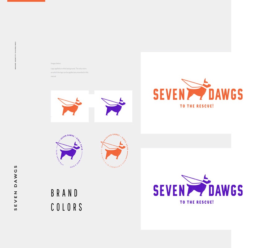 The brand is the main element of identification for Seven Dawgs. Its primary goal is to translate the values of the company through an attractive graphic concept that represents playfulness and courage. The logo has different applications, which is possible due its charismatic character.